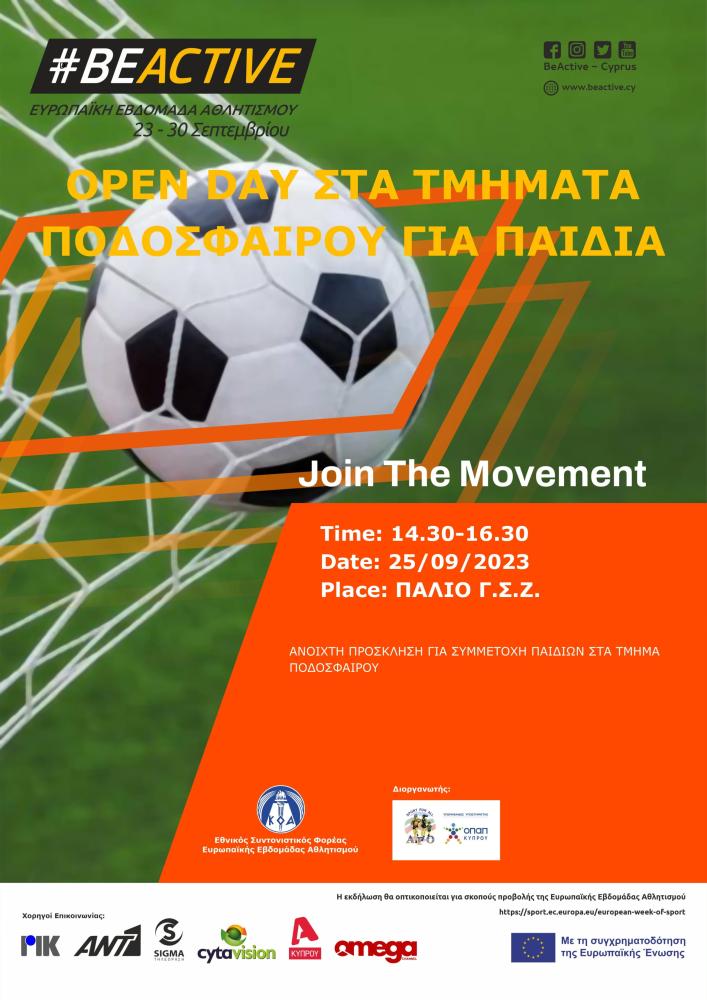 OPEN DAY ΣΤΑ ΤΜΗΜΑΤΑ ΠΟΔΟΣΦΑΙΡΟΥ ΓΙΑ ΠΑΙΔΙΑ